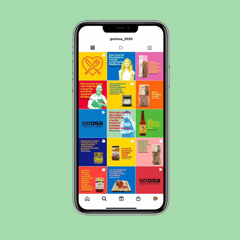 Secondly, we identified the target and put it at the heart of the brand's narrative, giving it a name and a sense of belonging: with #genteGustOsa we identify people who are always looking for unique ingredients, the perfect audience with whom to create a sincere dialogue. Thus was born the "Welcome Foodies" branding project, developed on different communication channels: e-commerce and Instagram, where the culinary obsessions that distinguish lovers of good food come to life; packaging, with the GustOsa box, a collectible, reusable and sustainable object in four variants; stationary, with its colored papers, stamps and stickers to underline the craftsmanship of GustOsa's products.