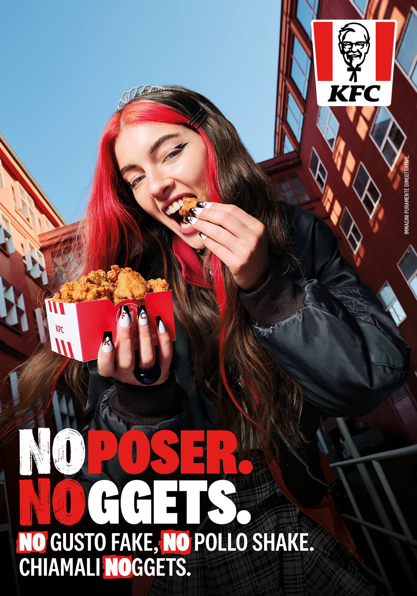 Dimenticatevi i classici nuggets così come li avete sempre conosciuti. Da oggi KFC porta in Italia, in anteprima europea, un prodotto rivoluzionario che dice NO alle preparazioni precotte, NO al pollo macinato e ricomposto, NO al gusto tutto uguale. Da qui l’idea creativa e il claim di campagna: “No gusto fake, no pollo shake. Chiamali NOggets".