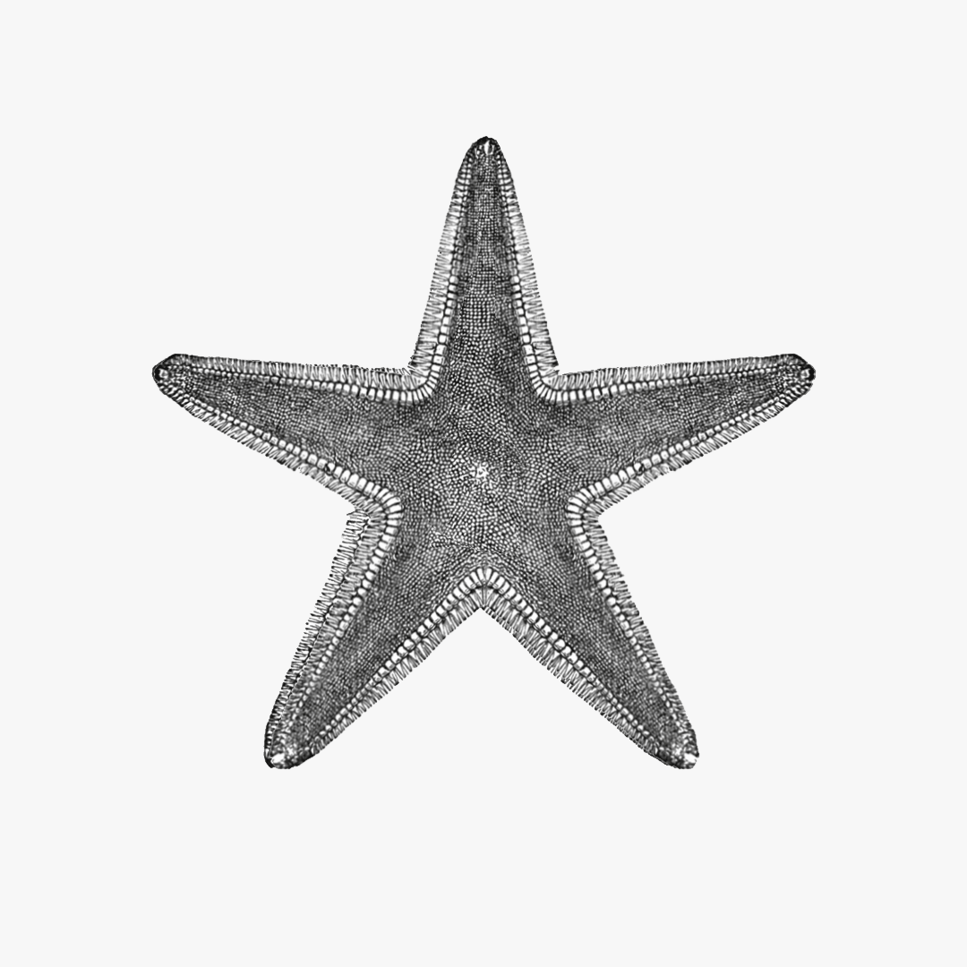 A yellow star - symbol of light for sailors who navigated by the stars - set into a black circle and with its tips rounded like a starfish.